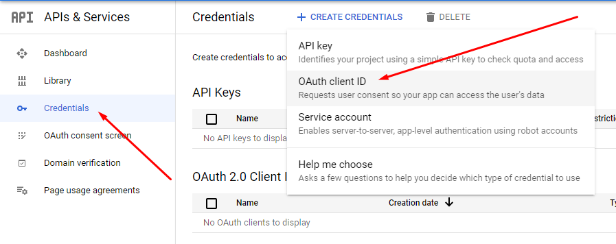 • Press Credentials tab > Create Credentials > OAuth client ID